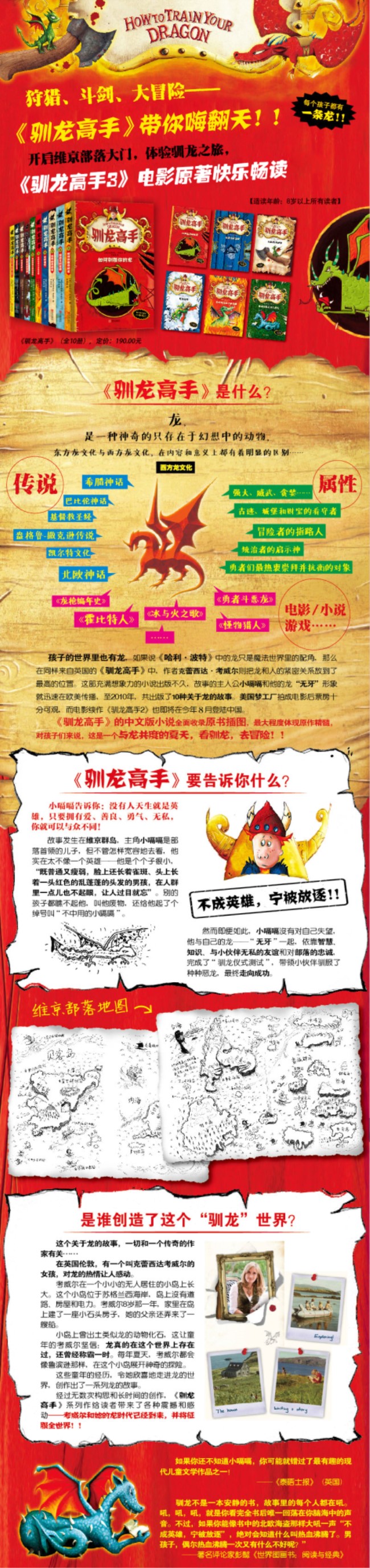 “驯龙高手”系列丛书共10册,已被翻译成30余种语言热销海内外,并被美国梦工场影片公司于2010年拍成同名电影上映;《驯龙高手2》也将于2014年上映。