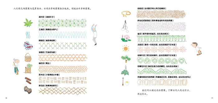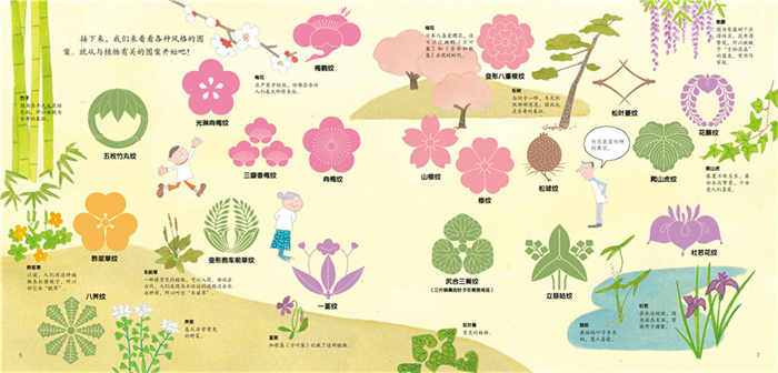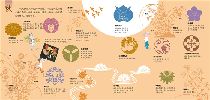 各种各样的图案 植物…梅花、樱花、紫藤、竹子、松鼠 动物…麻雀、兔子、蝴蝶、白鹤、乌龟 自然…月亮、星星、云霞、山脉、海浪 季节的图案 春…蕨纹、桐纹、柳燕纹 夏…瓢纹、雪纹、鳗鱼纹 秋…稻纹、菊纹、银杏纹 冬…龟甲纹、万字纹、松竹梅纹 街道中的图案 店铺、衣服…… 古今中外300余种图案融于一册!
