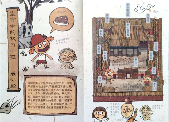 本套书共有8册,分别是《午门》《乾清宫》《养心殿》《慈宁宫》《宁寿宫》《文华殿》《太和殿》《御花园》。书中巧妙地选取了故宫中理政、庆典、居住、游憩、宗教、学习的典型性建筑,通过诙谐幽默的表达方式,将相关建筑知识、其中发生的故事、相关等级制度,一一传达给读者。可以说,读完这套书,就已经掌握了故宫建筑的主要基本功能,也了解了重要的古建知识,是一套难得的故宫知识小宝典。