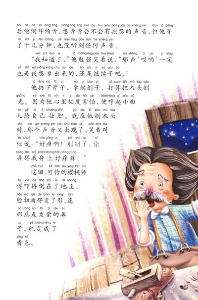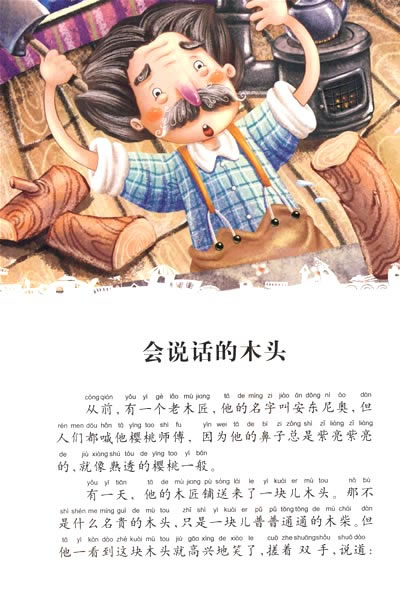 从前,有一个老木匠,他的名字叫安东尼奥,但人们都喊他樱桃师傅,因为他的鼻子总是紫亮紫亮的,就像熟透的樱桃一般。