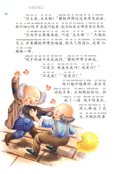 这次,樱桃师傅惊得目瞪口呆,舌头都要耷拉到下巴上了。过了好长时间,他才结结巴巴地唠叨起来:“这‘哎呦’声是从哪里传出来的呢……难道是这块木头学会了像小孩子那样说话吗?不,这不可能,它只不过是一块普普通通的木头……到底是怎么回事呢?难道说里面藏着一个人。如果是这样的话,他可要倒霉了。看我教训教训他!”