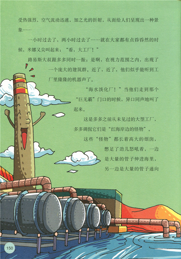 “是啊,你弄错了。”路易斯大叔和蔼地说,“ ‘沙特’是一 个完整的词,是不能分开解释的,就像‘玻璃’就是一个词一样,合 起来才能表达一个意思。你们可能不知道,沙特王国的创始人叫伊本·沙特,后世的人为了纪念这位伟大的人,于是给这个国家取名叫沙特阿拉伯。其实,‘沙特’在阿拉伯语中是‘幸福 ’的意思,而 ‘阿拉伯’才指‘沙漠’啊。” “这个——那‘沙特阿拉伯’就是‘幸福的沙漠 ’喽?”多多搔搔头,不好意思地笑了。