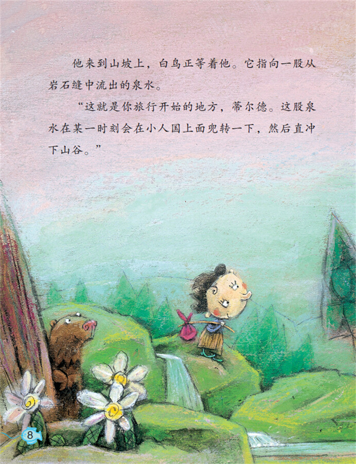 人国的小矮人常年住在深坑和山洞里,没人敢到外面去,除了蒂尔德。他梦想去看大海,可所有人都不支持他,除了白鸟。最终蒂尔德终于梦想成真,但他第一想法就是回去跟小矮人们分享他的喜悦……