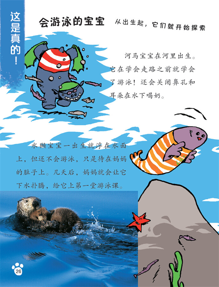 本书还介绍了各种动物幼崽的相关知识。长颈鹿、猎豹、猩猩、瞪羚、象、熊猫、袋鼠、鲸、熊、郊狼、河马、水獭等,这些动物妈妈和幼崽的知识,书中均有介绍。