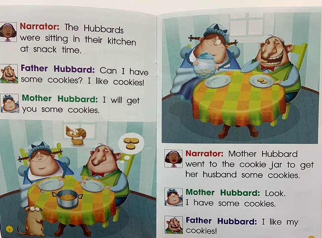 甜点时间到了,哈伯德爸爸和他们的宠物们都等着妈妈给他们准备吃的,爸爸得到了每位的饼干,小猫得到了爱吃的鱼,小狗呢,他最喜欢的食物是什么呢,妈妈会不会给它最爱吃的食物呢?