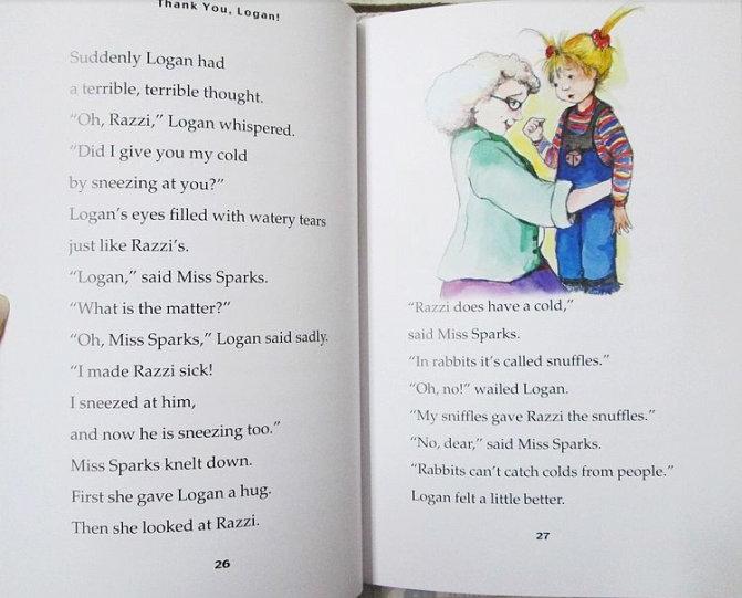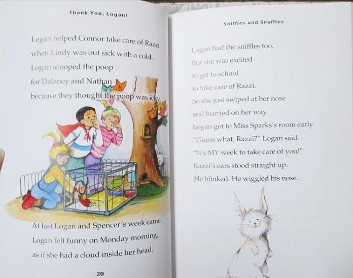 In the lively, new Hopscotch Hill School series, the kids in the classroom have fun as they learn important lessons from their fabulous teacher. Hallie loves reading, but she has a hard time learning to write. She feels so terrible that she tears up her work. Then her teacher and her kind friends support her and help her develop her skills. It may take a while, but she'll get there. Logan likes taking care of Razzi, the class rabbit; but after she gets a cold and sneezes "big, wet, yucky sneezes," she worries that she'll make Razzi sick. The teacher reassures Logan that rabbits can't catch colds from people but tells her that she must wash her hands and cover her nose and mouth to protect other people from her germs. Allen's energetic full-color illustrations show all the kids in the diverse classroom: Hallie is a pretty redhead in a gorgeous purple outfit; Logan, in muck jeans, splashes cheerfully in the mud. A third title in the series, Bright, Shiny Skylar, centers on an active kid who learns how to focus her energy. The classroom is idyllic, but the problems and their solutions are real; and lengthy appended notes to adults provide excellent advice and suggest activities to nurture children's reading skills and boost self-confidence. Hazel Rochman