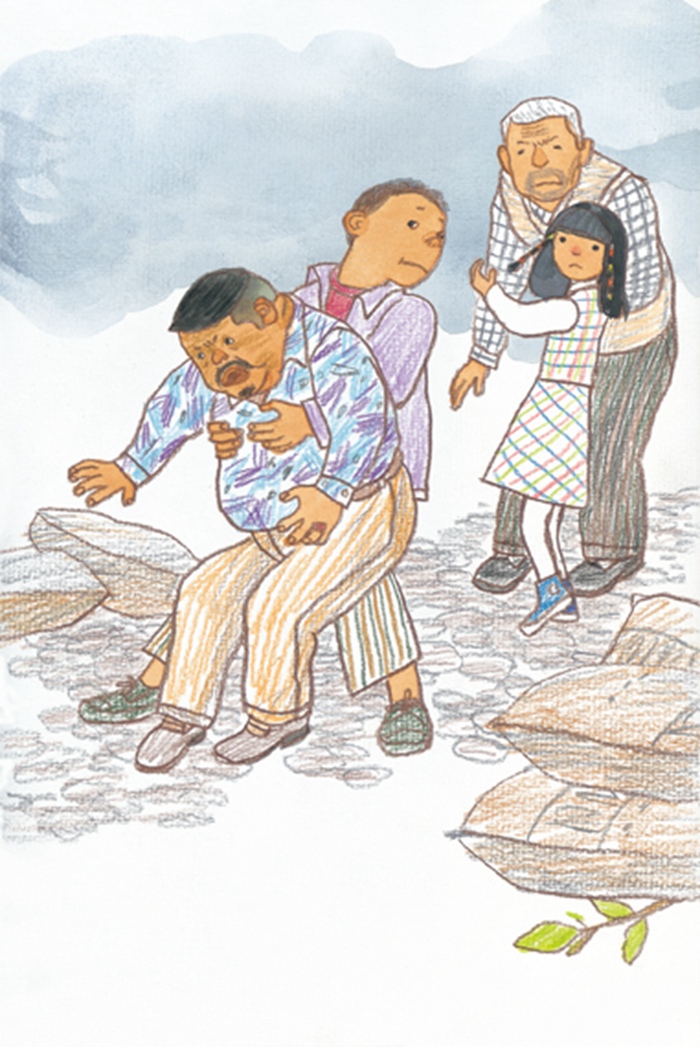 坐坐嫌靳爷爷摘得慢,他说:“爷爷,我来摘。”他不等靳爷爷说话,就把捧着的几片叶子倒给了爷爷。
