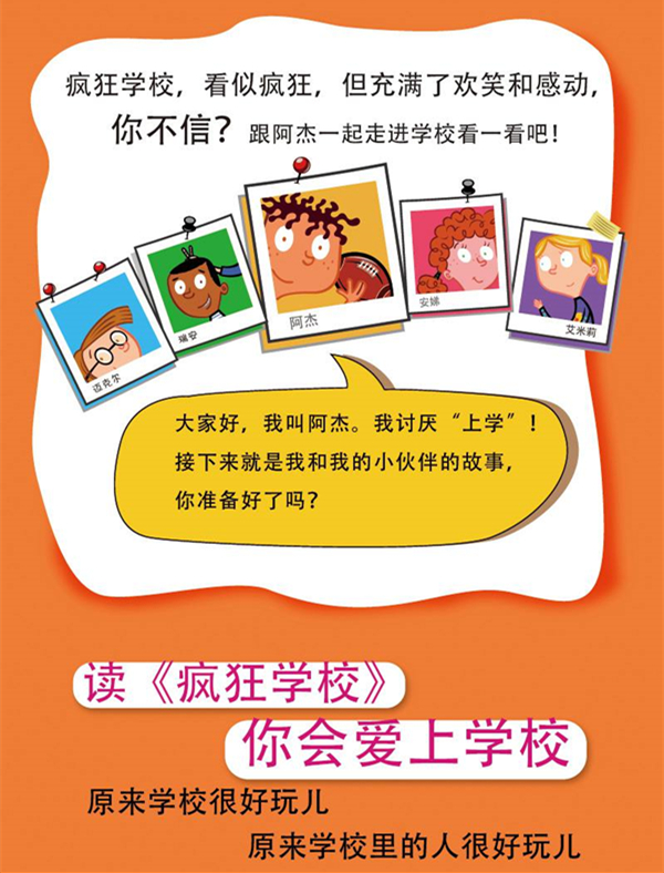 《疯狂学校》是一套真正送给所有孩子揭秘学校真相的礼物!无论你是否对学校恐惧和厌倦,打开这本书你会发展原来校园可以如此有趣,校园里的人可以如此有趣,这里有太多你未曾发现的领域和神秘魔力!