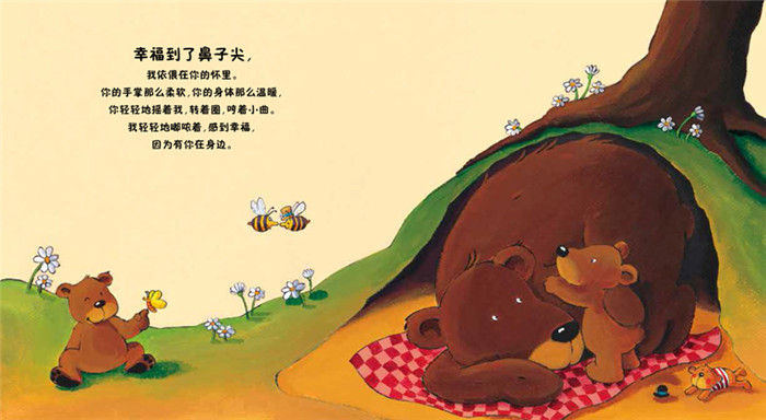 小熊宝宝拥抱着熊妈妈,小老鼠凭借自己的力量爬到一棵很高的树上,小野兔和它的朋友们在一起玩耍,忘记了所有的烦恼。 幸福是如此多样,幸福是如此具体,幸福是如此满溢!