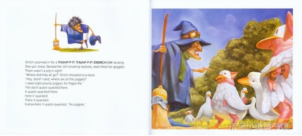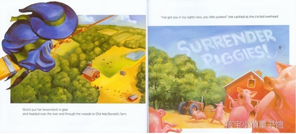 这是个关于农场里一群可爱又聪明的小猪对抗阴险恶毒的老巫婆的故事。一天早晨,老巫婆 Gritch 突发奇想地要吃猪肉派,但做猪肉派却需要八只小粉猪。于是,为了满足自己贪婪的欲望,老巫婆便带上她那偌大的女巫帽,骑着神奇的扫帚,飞到了最近的 Old MacDonald 叔叔的农场里抓小猪。