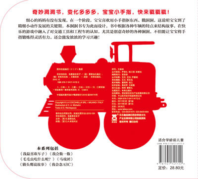 学龄前的儿童在某个阶段,很喜欢用小手抠东西、戳洞洞,细心的妈妈们就会发现,这是宝宝到了细微小动作发展的关键期。本套《奇妙洞洞书》特为宝宝的这个阶段而设计,全套6册,每一册都充分运用了生活中常见的各种事物特点,来构成一个个为宝宝认知的小故事。这些好玩的各种形状的洞洞能激发小宝宝用小手戳戳,用小嘴数数,让宝宝与书进行游戏般的互动,培养宝宝触觉神经的发育并丰富孩子对数字、字母、事物、动物的多方位认知。书中童趣盎然韵律优美的文字,使宝宝获得触觉训练的同时,感受语言文字的魅力,培养孩子对文字的敏感度,塑造孩子对词语、字句的认知能力。这套洞洞书为家长和宝宝带来了全新的“洞洞”阅读形式,将会为亲子阅读添加无穷无尽的乐趣。