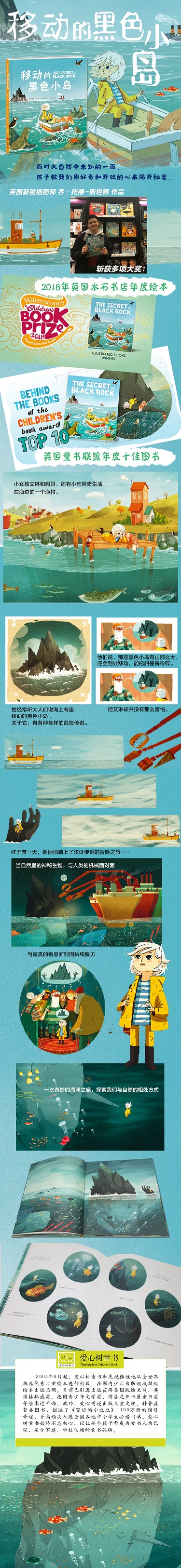 在这本极有质感的精装绘本中,海洋生物的层次感和温和亲切的大黑石都描绘得非常唯美而梦幻。并且书里传递出的亲切的环境观点为这个现代童话故事增添了现实的深度。