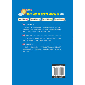 书中文章形态各异,体裁多样,包括小说、散文、童话。文章的主题十分丰富——绚烂多姿的校园故事、感人至深的亲情故事、天马行空的幻想故事、情节跌宕的武侠故事等,呈现了一个丰富多彩的文学世界。对扩大同学们的阅读视野,丰富青少年的见识,以及提高文学素养、写作水平大有裨益。另外,每一篇文章开头的一段引文令文章出彩不少,书中的五彩缤纷的插图也能给同学们的阅读带来更多的乐趣。