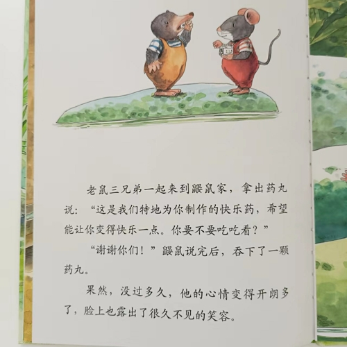 每个人都需要付出爱与被爱, 当快乐不起来时,我们自然也要寻求协助。 如同这篇故事里的鼹鼠, 借助老鼠三兄弟的药品及关怀,终于重获快乐!