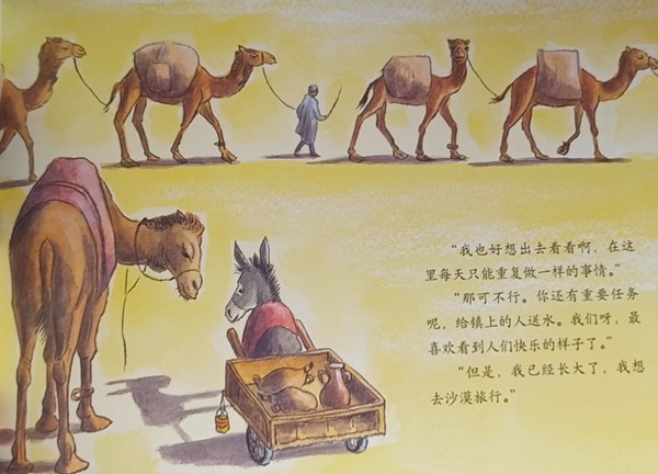 《沙漠里的驴子》是广西师大出版社魔法象图画书王国推出的作品之一。这部作品主要讲述了一只驴子在沙漠和战争的严酷环境中逐渐成长的故事。因为战争,驴子嗒嗒必须踏上艰苦的旅程,穿越沙漠给另一头的人运送货物。一路上,他遇到死亡也见证了新生。他懂得了在沙漠中生存的不易,但也没必要悲伤沮丧。因为这就是生活本身。生命从来不曾停息,穿透严酷的沙漠和战争环境,依旧绽放出靓丽的色彩。本书以战争为主题,为我们讲述了战争大背景下个体的喜怒哀乐,既让孩子品尝到和平的味道,又触摸到严酷环境下生命的坚韧挺拔。选题特点:日本著名图画书作家、日本产经儿童出版文化奖得主小林丰代表作,延续了其作品的一贯主题——战争与和平。讲述了战争大背景下个体的喜怒哀乐,既让孩子品尝到和平的味道,又触摸到严酷环境下生命的坚韧挺拔。作品最值得称道的地方在于作者的隐忍与克制。作者只是如实描绘了驴子嗒嗒一路上的所见所闻,整个叙述非常客观,很少夹杂个人的价值评判。但正是这样的娓娓道来才更能打动读者的心灵。在这部作品中,热闹的市集、苍茫的大漠、辉煌的星空、狂暴的沙尘暴,还有荒凉的战场……小林丰用自己的画笔为我们生动展现了中东地区的风土人情,当然还有战