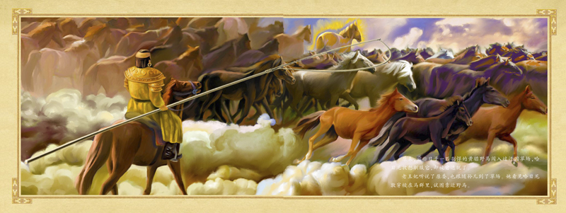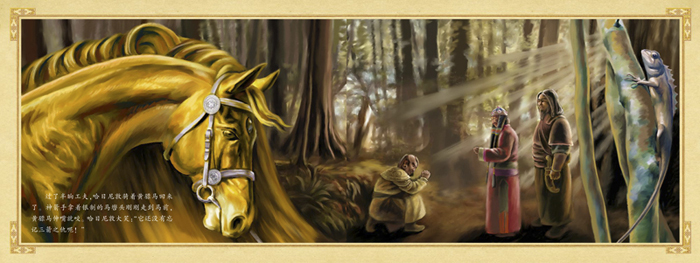 新疆青少年出版社出版的这套《江格尔》绘本历时五年,五年的时间我们和这部史诗对话,我们一起翻阅史料,一起跋山涉水,一起促膝讨论,一起从粗略的大线条走到今天的精美画面。只为让中华民族的史诗巨著通过绘本这条绚丽的通道走入孩子心中。