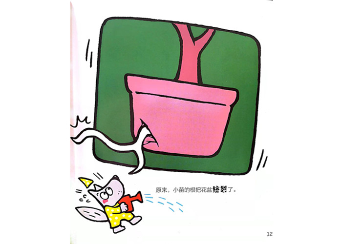 笨狼捡到了一颗种子。可是谁也不知道这是什么种子。笨狼好奇得不行,他决定,把种子带回家,种在茶杯里,等它长出来。茶杯里的种子发了芽,长出了小苗,长得飞快。茶杯被挤破了,笨狼的朋友们帮他齐心合力把小树苗移到了大花坛里。但是小树苗还在继续长大,把笨狼家的房顶都快顶破了。他们又把它移到了外边。O后,这颗种子长成了什么呢?大家都和笨狼一样好奇呢