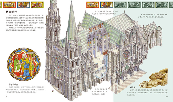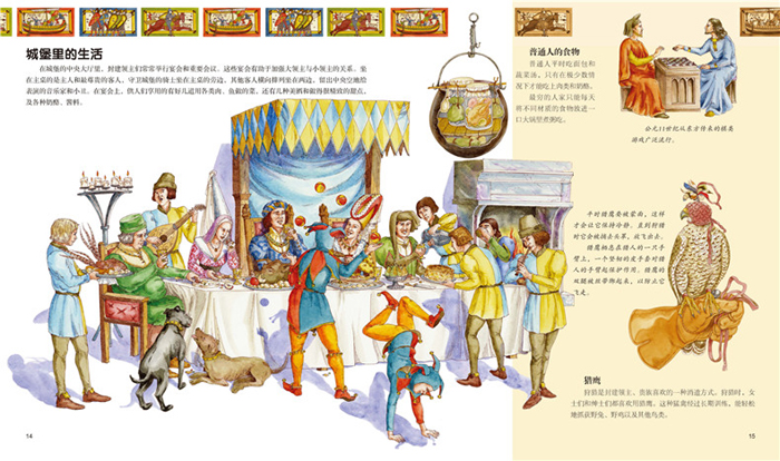 《走进中世纪》中,讲述了拜占庭帝国和神圣罗马的发展,北欧海盗和骑士时代的概况,介绍了欧洲的城堡和城堡里的生活、服饰的变革、农业技术的变革和贸易的发展等,插图细致精美,内容丰富。