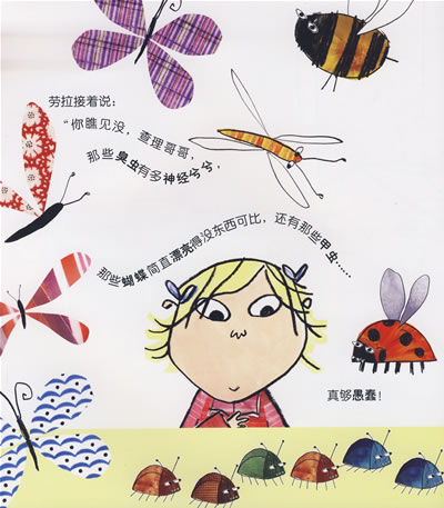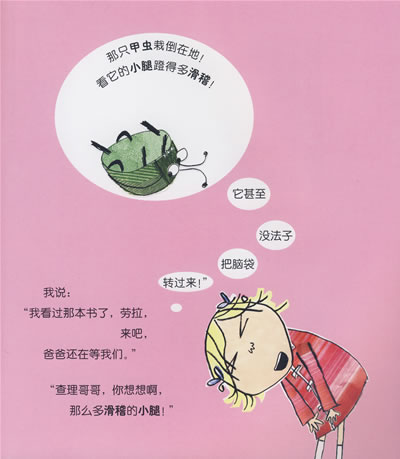 查理有个小妹妹叫劳拉,她特喜欢看书,现在,有一本书成了她的心头宝。劳拉说:“《甲虫、臭虫和蝴蝶》是我最喜欢的书了,我真的好想看到它。就现在,现在,现在,现在!”