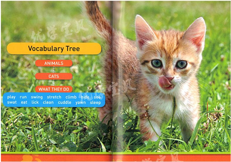 Pounce Follow a little kitten through its day to learn all about these young cats. Through text features such as the vocabulary tree and the wrap-up activity, kids will be introduced to vocabulary in concept groups--helping them make connections between words and expand their understanding of the world.