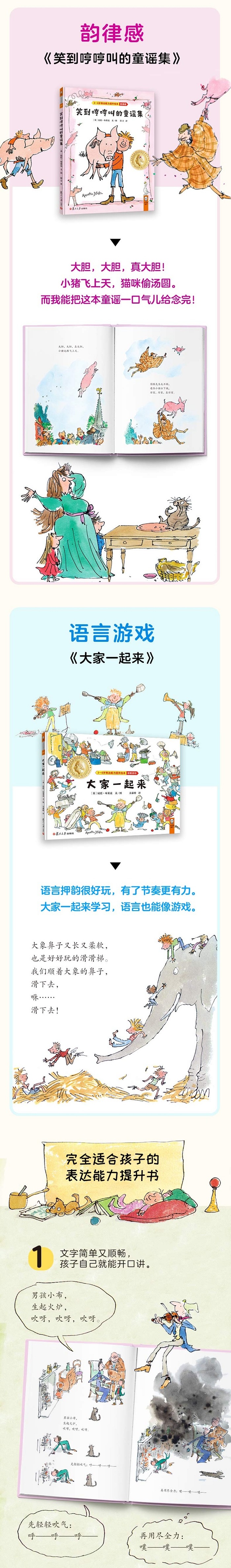 5本经典绘本,包含看图说话、数数、反义词、韵律感、语言游戏5种好玩的表达体验,让孩子表达能力大爆发!
