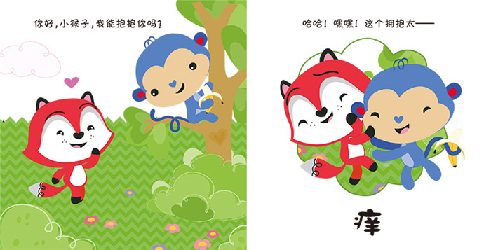 《费雪宝宝同伴交往敏感期系列故事》系列取材自美泰公司旗下著名儿童玩具品牌“费雪”的各种动物形象,是针对本12月龄及以上的宝宝设计的卡纸书。本书是其中的拥抱故事分册,讲述了小狐狸寻找抱抱的故事,有的抱抱太凉,有的抱抱太黏,有的抱抱太痒,遇到大熊的时候收获了温暖的大熊抱。这本小书通过有趣的小故事,鼓励宝宝通过肢体接触向朋友表达感情,书中配合故事情节而设计的小机关,也能很好地锻炼宝宝的手眼协调能力。