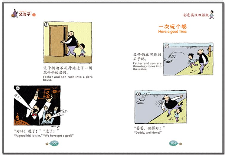 《父与子》德国著名漫画大师埃?奥?卜劳恩的不朽杰作,它誉满天下、风靡全球。作品塑造了善良、正直、宽容的艺术形象,处处充满着智慧之光,时时流露着纯真的父子之情,深深打动了无数读者的心。作品中生动幽默的小故事均取材于卜劳恩日常生活中的真实体验,一幅幅小而精湛的画面跳跃着智慧的光芒,简单的线条里流淌出纯真的父子之情与融融天伦之乐,震撼人心。本书文字根据《父与子全集》的漫画而编,全书采用中英对照的方式,力求原汁原味、妙趣横生地表达父子间的亲情与淳朴的天性,让读者既能更好的理解漫画的幽默,又能学好英文,可谓是一举两得。
