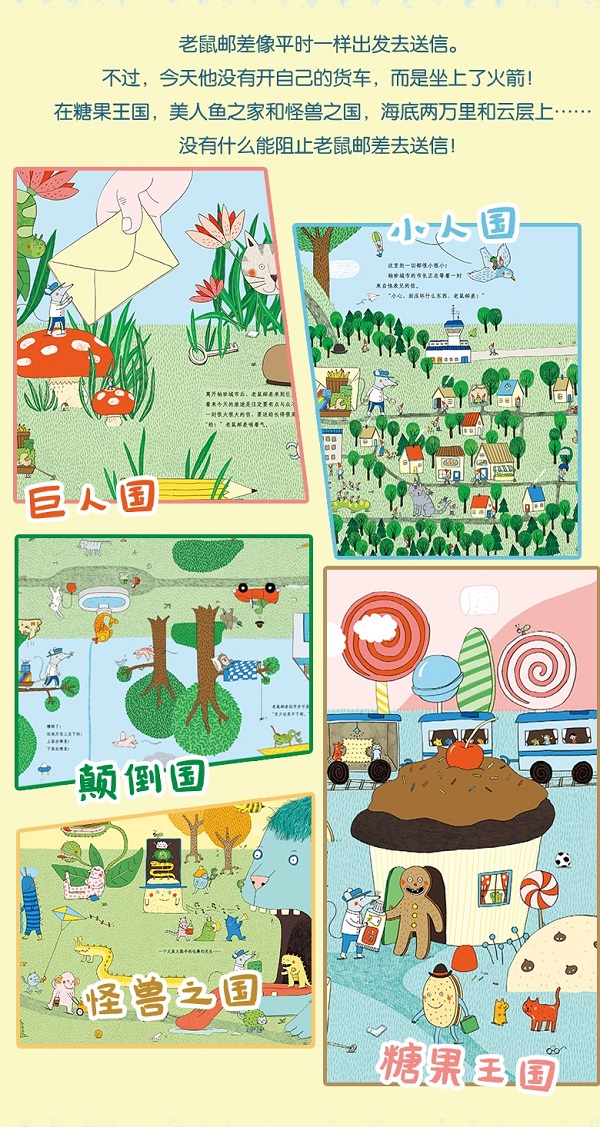 一天早上,老鼠邮差像平时一样出发去送信。不过,今天他没有开自己的货车,而是坐上了火箭……在糖果王国,美人鱼之家和怪兽之国,海底两万里和云层上,没有什么能阻止老鼠邮差送信!