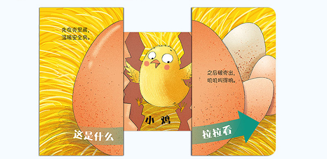 《现在将来/惊奇拉拉看系列》采用新奇的拉动机关与韵律谜语结合的方式,如同做游戏一般,孩子可以结合每个页面上的谜语拉动图书页面的剪头提示一侧,从书中发现隐藏的秘密。该书既锻炼了孩子手部的精细动作,又提高了观察力和想象力。