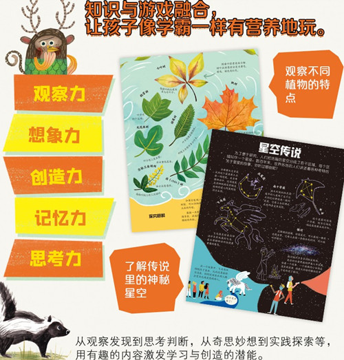 本套书包括两册,集游戏性、知识性、实践性、艺术性于一体,从动手实践到逻辑思维培养,从语言训练到创意激发,从拓展认知广度到激活社交技能等,让孩子成长为多元化创新型人才。丰富的游戏内容,帮孩子重塑思维方式,培养逻辑思维、目标思维、类比思维和创意思维。 《全科知识》这本包括60个思维游戏,分为文化与历史、逻辑与推理、科学与实验、语言与阅读、艺术与创意五大板块;《学习力》包括60个思维游戏,立足于锻炼观察力、记忆力、想象力、创造力、思考力等五种学习能力。 书中的游戏素材取自生活中的元素,给孩子提供一种新视角去发现生活的智慧和艺术。
