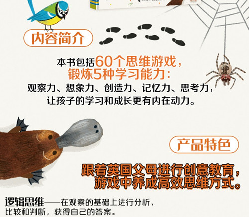 1.英国童书出版公司尤斯伯恩为6—10岁儿童潜心打造; 2.汲取英国创意教育精髓,用游戏释放创造潜能,培养高“玩商”; 3.用富有创意的游戏重塑思维方式,让每个孩子都养成高效的思维; 4.知识与游戏巧妙衔接,让学习因有趣更高效; 5.内容涉及科学与实验、文化与历史、逻辑与推理、语言与阅读等多领域,满足孩子多元化发展需求; 6.取材于生活中的元素,在游戏中感受生活的智慧与艺术。