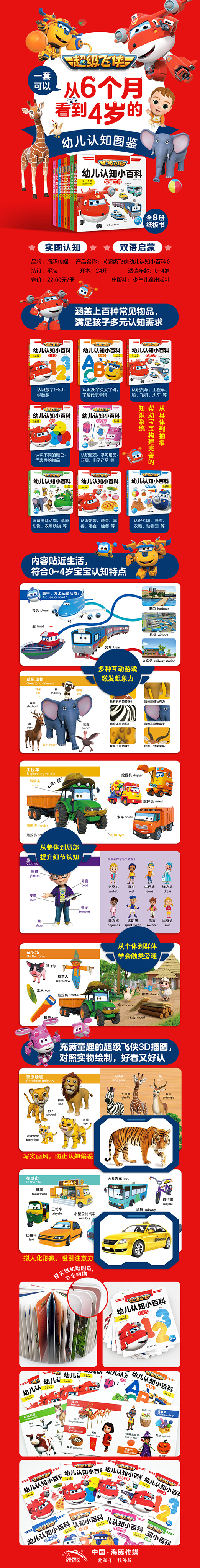 专为0~4岁宝宝设计的认知纸板书,中英双语。丰富多样的认知内容,为宝宝开启认识世界的大门,全面提升知识储备、语言能力、认物能力!