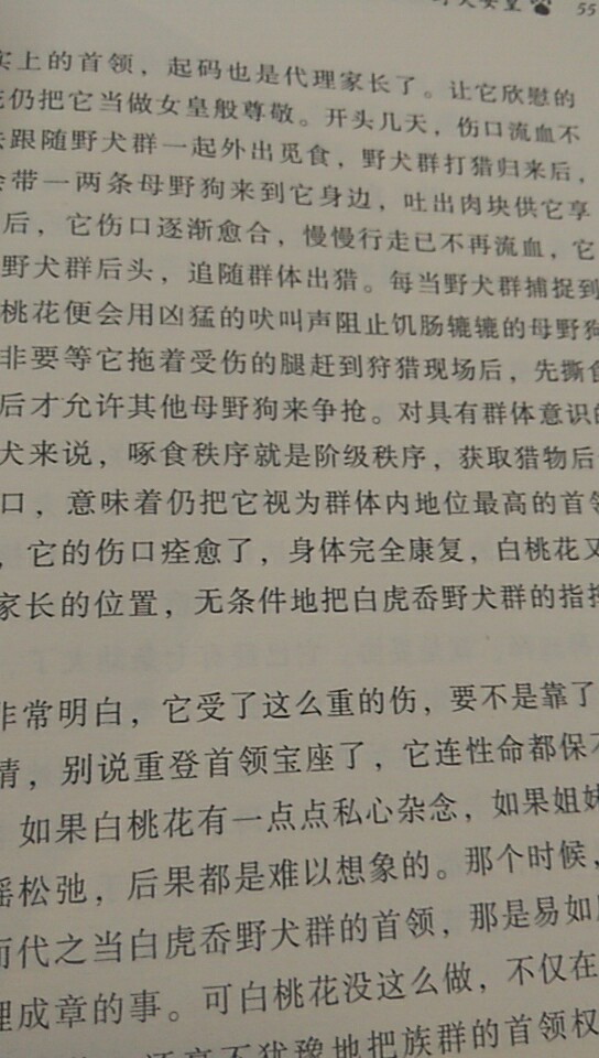 第一章 驱赶公狗遇到麻烦七八条野狗,在山坡上散开,像一张网一样,将一只雪兔团团围住。野狗是日曲卡雪山最优秀的猎手,尤其是成群结队的野狗,能捕杀嘴唇翻卷獠牙凶猛的公野猪,对付区区一只雪兔,当然是小菜一碟。几分钟后,倒霉的雪兔便魂断雪山,成了野狗们的早餐。雪兔属于啮齿类动物,虽然肥胖,但个头不大,也就七八斤重。一只雪兔,显然不够这群野狗放开肚皮饱餐的。狗多肉少,谁都想多吃一口兔肉,便一拥而上,你叼兔头,我咬兔腿,你撕兔肚,我扯兔背,拼命争抢起来。“呦欧——”一条母野狗跳出狗群,蹿上旁边一块磐石,威严地吠叫一声。这是一条约四岁龄的野狗,对野狗来说,四岁龄正处在生命的巅峰,犬牙洁白如冰雪,狗毛光滑如锦缎,身材高大,四肢细长,头脑敏捷,颈窝与胸部连接处,有一块水红色毛斑,形如鸡心,根据这一特征,得名叫红桃心。红桃心是这群野狗的首领,也可以称为当家犬。刹那间,闹哄哄的野狗们停止争食,安静下来,抬头仰望红桃心。红桃心跳下磐石,龇牙咧嘴嚣叫两声,迫使野狗们朝后躲闪,然后蹿到雪兔旁,叼起雪兔的脖颈,走向一条公狗,将雪兔吐在公狗面前,自己一步步朝后退去。红桃心的举动再明显不过了,是要把整只雪兔奉送给这条公狗。这是一条年轻的公狗,也是这群野狗中唯一的雄性,牙口也四岁龄左右,一对狗眼像是用蓝水晶雕刻成的,蓝晶晶水汪汪,嘴吻线条优美肉感很强,用野狗的标准来衡量,称得上是个美男子,特别是那条尾巴,又长又粗,绒毛细密,华丽如豹尾。它的名字就叫赛豹尾。野狗群一阵骚动,有两条母狗“欧欧汪汪”怨恨地叫起来: ——雪兔是大家一起辛辛苦苦捕获的,凭什么要让赛豹尾独自享用!——拿我们大家的东西去讨好公狗,你怎么不害臊哪!红桃心对母狗们的埋怨置如罔闻,退出五六米远,站在土墩上,用温柔的眼光注视着赛豹尾,发出几声轻曼柔顺的吠叫:——快吃吧,趁兔肉还没冷却,趁兔血还没凝固,美美饱餐一顿! 赛豹尾舔了一口兔颈创口冒出来的血蘑菇,低头啃咬雪兔大腿。这时,一条名叫独眼姨妈的母野狗,以山坡上几丛蒿草作掩护,悄悄绕到赛豹尾背后,出其不意地从草丛蹿出来。它太饿了,想从赛豹尾嘴中抢一条兔腿来充饥。红桃心似乎早就察觉独眼姨妈的企图,没等它靠近赛豹尾,猛地扑蹿上去。一下将它撞翻在地,并娴熟地将嘴吻刺探到它的颈窝。对野狗来说,这是最严厉的警告:再敢不听招呼,胡作非为,我可就不客气要往死里咬啦!独眼姨妈斜躺在地上,尾巴紧紧夹在两胯之间,那只独眼半睁半闭,这是野狗独特的形体语言,表示放弃抵抗,请求宽恕。本来就是吓唬吓唬而已,并没想真的去伤害独眼姨妈,红桃心轻盈弹跳,从独眼姨妈身上跳开去,算是原谅了部属的错误。独眼姨妈站起来抖抖灰尘,神情沮丧地退到蒿草丛里,嘴吻伸进草根,发出怨恨的低嚎,显然,狗心不服,狗心难平。——太偏心眼了,这种德性怎么能当首领!身为首领,红桃心也知道,自己在众目睽睽之下,将集体捕捉到的猎物送给公狗赛豹尾单独享用,做得有点太过分了,有违种群内部公平、公正、公允的三公原则,会损害它的威信。可它已顾不了这么多了。赛豹尾就要离开它,就要离开这个群体,对于白虎岙野犬来说,雌雄之间一旦分离,重新聚首的可能性微乎其微,就算命运之神特别青睐这对雌雄犬,让它们能再次相会,也起码是明年这个时候了。它喜欢赛豹尾,舍不得赛豹尾离去,可又不得不让赛豹尾离去,情意缱绻而难分难舍,于是就想到把这只雪兔当做临别馈赠,希望赛豹尾能平平安安度过这长达一年的流浪生涯,希望赛豹尾能珍惜这段情缘,明年夏末秋初发情季节再到白虎岙来找它。生活在日曲卡雪山一带的野狗,发情期一般都在夏末秋初,这是为适应环境而做出的自然选择。夏秋季节的日曲卡山麓,温暖潮湿,扁虱、跳蚤、蚊虫、小咬儿,还有专门叮吸各种动物血的花苍蝇大量繁殖,假如野狗发情期是在春季,经过三个月的怀胎,幼犬出生刚好是各种寄生虫最猖獗的时候,小家伙皮肤嫩,身体抵抗力弱,夭折率很高。而发情期在夏末秋初,经过三月怀胎,幼犬出生刚好是秋末季节,气温凉爽,各类寄生虫销声匿迹,小家伙可免受寄生虫叮咬之苦,害传染病的可能性大为减少,存活率随之提高。动物的生育规律,总是力求适应当地的自然环境。 P1-4