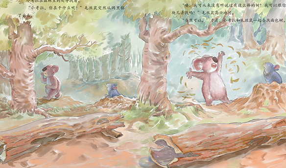 有一天,小考拉做了一个梦。梦里,他在森林的深处看见了一棵高大神奇的怪树,树上长满了美味的面包,他还吃了一个。“好吃极了!”醒来,他决定出发去寻找这棵神奇的面包树……