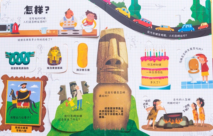 如何带孩子了解悠久且厚重的历史,在他们受制于文字认知水平前,“兴趣是最好的老师”。这本书里有丰富且充满乐趣的知识,比如谁是亚瑟王、金字塔在哪里、为什么埃及人要制作木乃伊、人们什么时候戴眼镜、哪种电话最悠久……让孩子在大开眼界、拓展认知广度的同时,爱上历史。超过60张翻页设计,给孩子60多次自主探索和揭秘的体验。