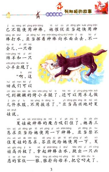 气愤的亚当再次向夏娃说了上帝的警告,提醒她不要再碰神棒了。可固执的夏娃生气了,她猛然将神棒折成两段,向海里扔去。立刻,海面波涛汹涌,海里出现了一只怪兽,它身上的皮毛非常美丽。夏娃马上想到用它做一条暖和的围巾。当她走近怪兽去捕捉它时,怪兽冷笑一声,接着逃走了。这只怪兽是一只狐狸,叫作列那。它狡猾奸诈、诡计多端,它后来经常捉弄小动物们,还做了很多坏事。我们的这个故事讲述的就是狐狸列那的一生。