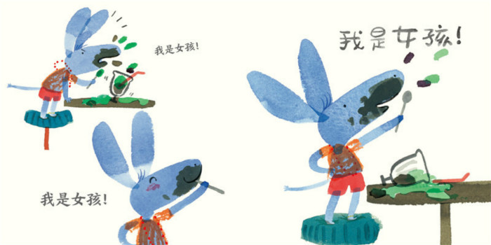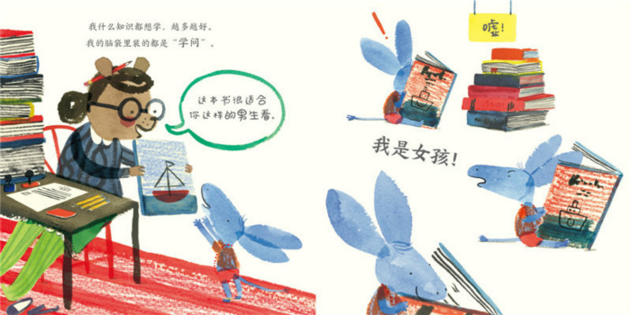 《不一样的女孩》这本书我一看就哈哈笑了。这是一本主题表述很明显的书——打破性别刻板印象。我很喜欢这本书,因为作者用了一个独特的视角。她不是平铺直叙地指出哪些是性别刻板印象,女孩子或者男孩子不需要把自己套在这些刻板印象的框里,相反,她讲述了一个经常打破刻板印象的女孩子遭受到了误解,让女孩子喊出心声的故事。女孩身边的人试图把她放到性别刻板印象的框架里,但是她很自信地做着不符合性别刻板印象的事。*后,她和一个男孩子说:我们就是要做与众不同的自己。