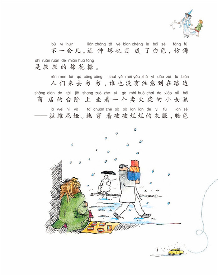 “真是疯了!”拉维尼娅心想,“难道在圣诞节没有其他事情可做了吗?难道她不用回家吃饭睡觉吗?穿得这么单薄,她会生病的!”