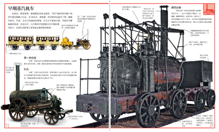 3.内容丰富:13大巨幕般全景页,200年火车发展史,100多幅精彩图片,200余个有趣知识点,孩子想要的关于火车的一切都在这里!