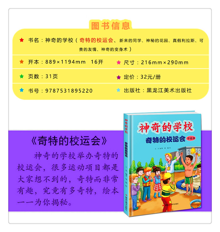神奇的学校举报奇特的校运会,很多运动项目都是大家想不到的,奇特而非常有趣,究竟有多奇特,绘本一一为你解密。