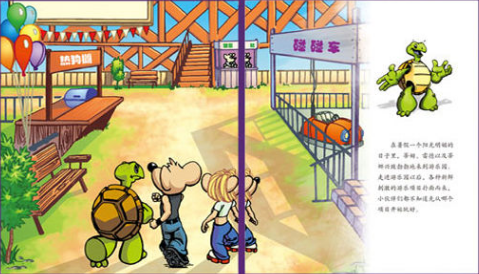 三位小伙伴去公园玩,小乌龟蒂姆没钱坐过山车,只好向有钱的小老鼠雷德请教