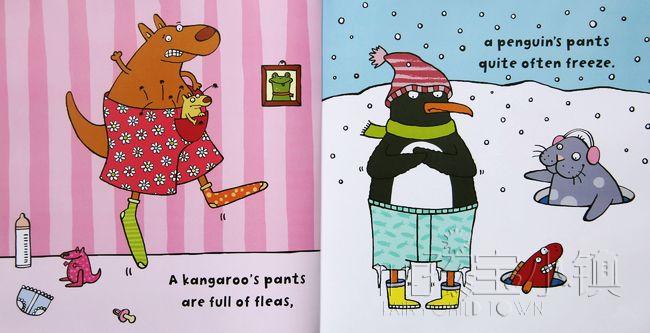 From long johns to bloomers, Y-fronts to boxers - this book isquite simply packed with pants! There's a cat who buys her pantsfrom a catalogue and a frog who wears pants when he's off for ajog. Not to mention a penguin with frozen pants, or thedifficulties of finding undies for an octopus. With an infectiousrhyming text and brilliantly entertaining artwork, there's a giggleguaranteed on every page.