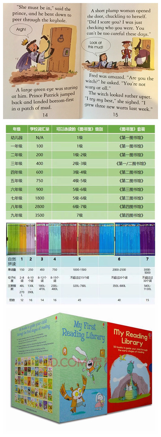 USBORNE图书馆系列到LEVEL5之后,词汇量增加到1000-1500,每页的文字数量在十行左右,共48页,涵盖了英文大部分的语态和时态。从这个级别开始,由图画书逐渐过渡到章节阅读。适合小学五六年级和初中生作为词汇量扩展读本。Level5系列均为世界知名的民间故事和童话故事,学生一般都已接触过中文版本。