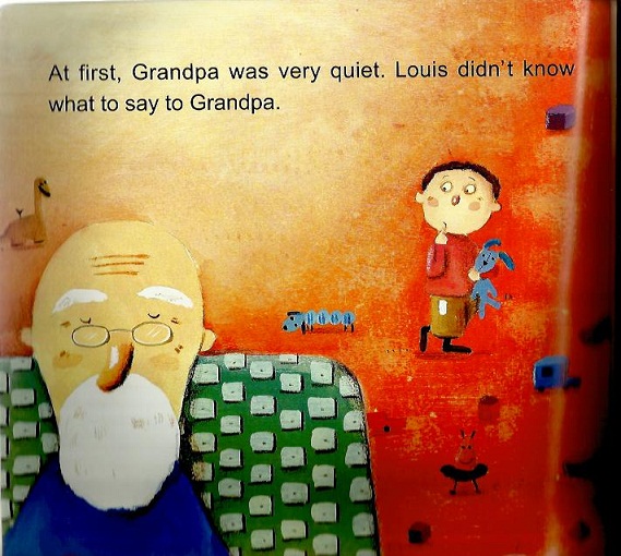 故事中的路易斯,由于爸妈上班不在家,只有爷爷和他做伴。路易斯本来都是自己玩积木、画图。直到有一天,他拿起故事书想念给一旁的爷爷听时,却发现爷爷原来是个讲故事的高手呢!小朋友,你有没有特别想要去关心的人呢?付出行动,给予关怀,你会有意想不到的收获哦!