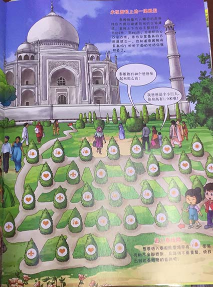 1. 丰富的益智游戏:有走迷宫,找不同,连一连,算一算,能培养孩子观察力、想象力,开发孩子审美能力和逻辑思维能力, 2. 多彩的世界自然、人文地理知识:书中绘制了海量的自然、人文景点,可以了解到各个国家的历史和文化,有古老神秘的丝绸之路,倾而不倒的比萨斜塔、阳光*多的撒哈拉沙漠,还有多姿多彩的大堡礁,纯净壮丽的南极冰川……每一处,都绘制了众多*代表性的卡通形象,能让孩子们被书中的世界深深的吸引,目不暇接,爱不释手,刺激孩子们对世界的好奇心,让他们扩大自己看待这个世界的视野。