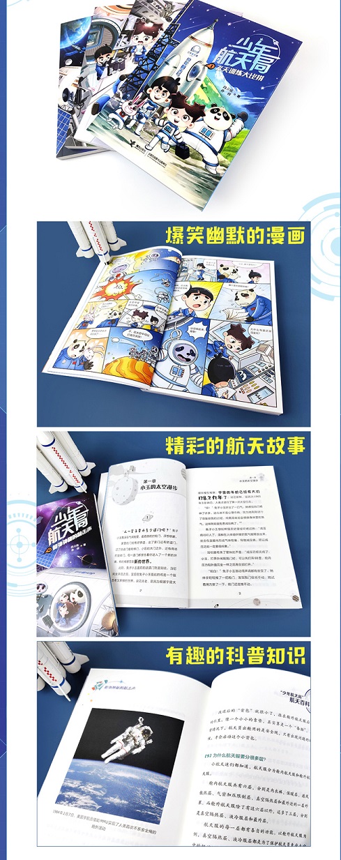 ★ 专业性 本系列图书的官方指导单位是中国卫星发射测控系统部,中国载人航天工程办公室。书稿和科普部分的内容,均经过专业审定。作者具有一定的航天知识。 ★ 趣味性 全书用爆笑幽默的漫画,结合精彩的航天故事,把复杂的航天研究生活化,把空洞的专业知识的故事化,把遥不可及的宇宙、航天器、卫星、航天员训练与升空等“神秘”元素细节化。把知识变得幽默有趣,浅显易懂,事例贴近小学生,为孩子们心中种下一颗“航天梦”。当然不仅是孩子,也为有着航天梦的各年龄层人们,敞开了一扇既有趣又专业的航天之门。 ★ 可读性 漫画生动有趣,能吸引孩子阅读。正文部分的航天故事浅显易懂,在故事中穿插一些航天知识,并进行简单的解说,与故事结合自然,适当的问题也会激发孩子对航天知识的兴趣。最后的航天知识部分,是对正文的一个拓展,是根据正文中提到的较专业的知识,进行一个深度的解析。总的来说,图书的文笔流畅,可读性强。