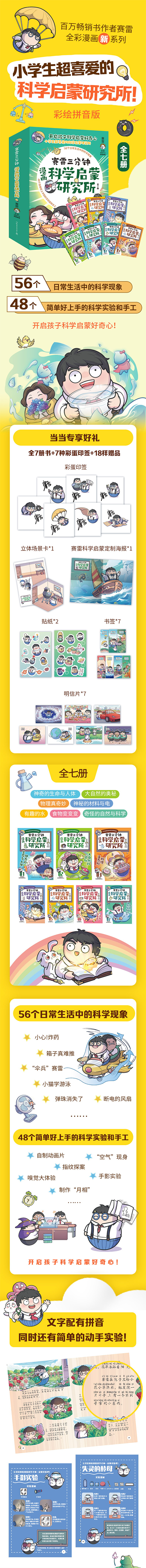 小学生超喜爱的科学启蒙研究所,彩绘拼音版! 56个日常生活中的科学现象,48个简单好上手的科学实验,开启孩子科学启蒙好奇心!