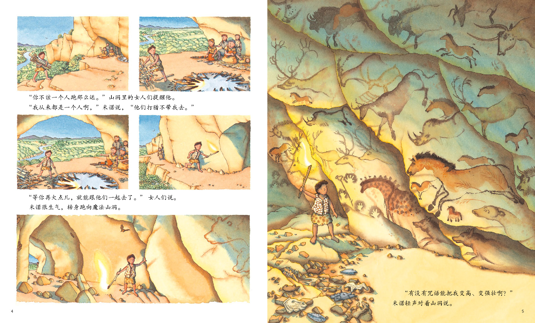 创作者用质朴的语言和磅礴的插图创作了一个原始人男孩的历险记,将勇气、智慧、陪伴和成长的力量带给所有的孩子。