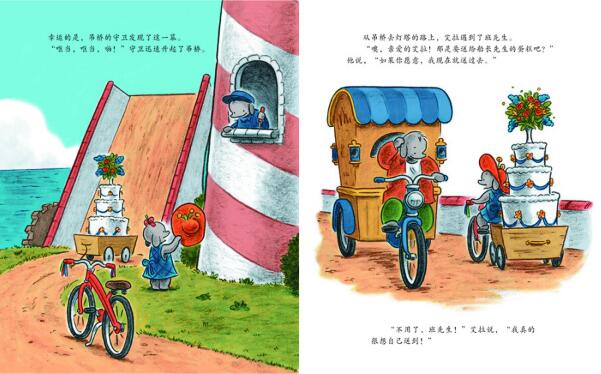 适读年龄:3~7岁亲子共读 7 《送蛋糕》 艾拉虽然年纪小,可是很想给妈妈帮大忙。不过,虽然妈妈很忙碌,还是不让艾拉切蛋糕,也不让她烤饼干……因为她还小。艾拉终于等到一个机会,担任蛋糕送货员。但是,她的小四轮车溜走了,还有半路出现的捣蛋鬼贝琳达……艾拉究竟能不能完成这项任务呢?