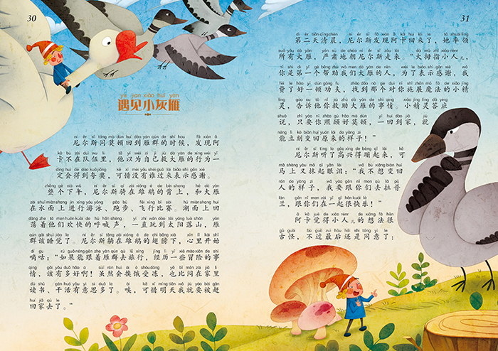 《尼尔斯骑鹅旅行记》是世界上唯一一部获得诺贝尔文学奖的童话作品,拉格洛夫也因此与丹麦童话大师安徒生齐名。在这部长篇童话里,有两个小主人公非常受欢迎,一个是被小精灵变成小不点儿的尼尔斯,另一个是梦想高飞的雄鹅莫顿。尼尔斯顽皮又讨人嫌,身上有着许多缺点,莫顿的理想那么不切实际,两个小伙伴在一起会发生什么?拉格洛夫通过他们的一次历险故事,把孩子们的想法、玩乐以及共有的性格缺陷都写进书里,连雄鹅莫顿也被赋予了拟人化的性格。